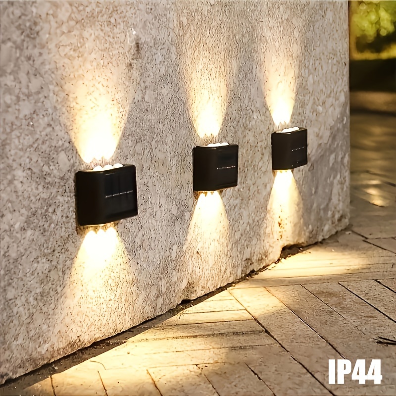 Conjunto de 2 peças, luz de parede externa com espelho convexo e 4/6/10 LEDs solares, iluminação externa, luz decorativa para parede ao ar livre, luz LED paisagística doméstica, adequada para uso externo, pátio, vila, cerca, terraço, jardim