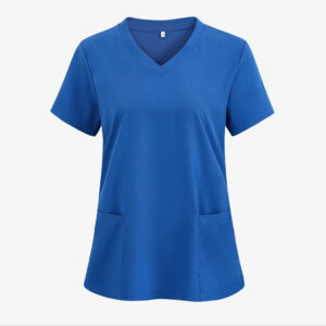 Blusas de enfermagem sólidas com decote em V, uniforme médico elegante de manga curta com bolsos remendados, roupas femininas